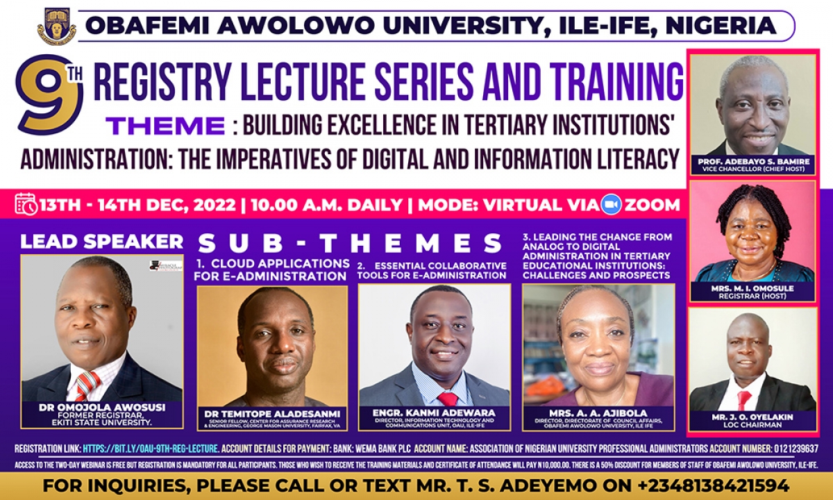 Nigeria (Obafemi Awolowo University) OAU presents 9th Registry Lecture Series and Training: Building excellence in Tertiary Institution